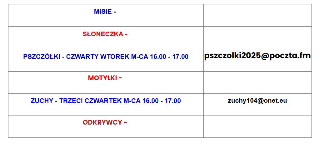 Na konsulrtacje nalezy umówić się telefenicznie lub za pomocą e-mail danej grupy